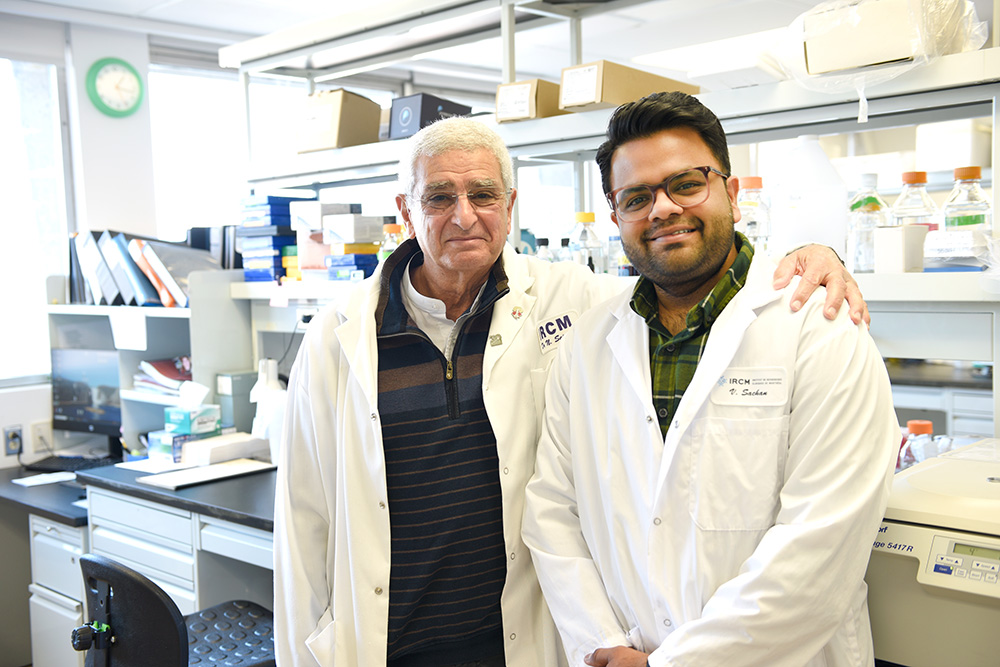Dr. Nabil Seidah and his PhD student Vatsal Sachan (Photographer: Hélène Lambin)